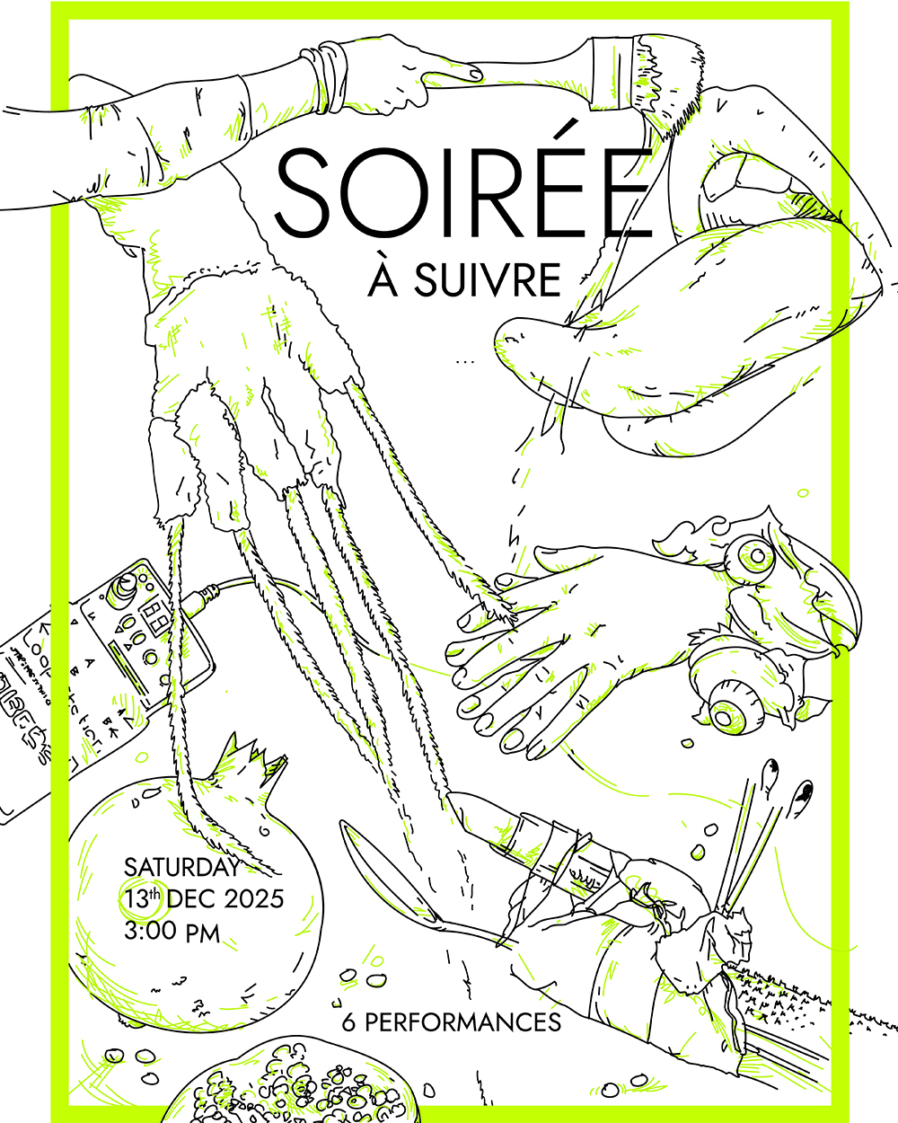 Ein performatives, interdisziplinäres Kunst-Happening, das Rituale, Probezustände und kollektive Erwartungen erkundet. Der Abend verhandelt die Frage nach Ritualen in einer Gegenwart, in der Erleben, Gemeinschaft und Ekstase zugleich inszeniert, gebrochen und konsumierbar sind. Im Zentrum stehen Körper, die ihren Ernst proben, ohne Gewissheit zu finden. Rituale ohne Mythos, Gesten ohne Ziel, Gemeinschaft ohne Versprechen. Ein Gefüge aus Drill, Erwartung und Zeremonie, das eine Verbindung vor Augen hat und das Leere berührt.