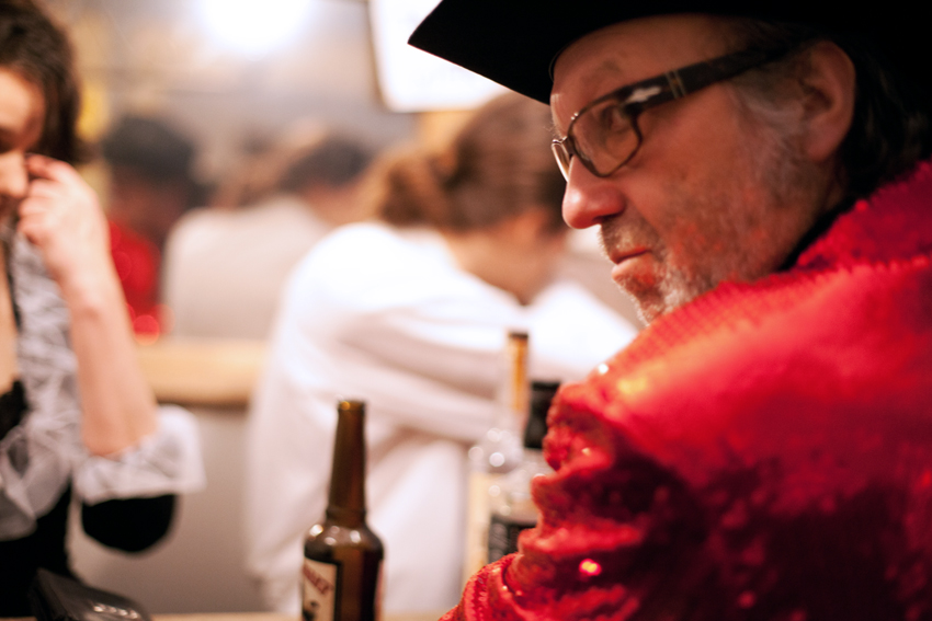Zwei gleiche Saloonräume stehen sich in der Mitte der Galerie frontal gegenüber. Bar, Schwingtür, Kunst und manche Personen werden doppelt gesehen. Zu Anfang des Abends wird der erste Saloon in Betrieb genommen. Eine Tonübertragung vom ersten in den zweiten Saloon wird im 10-Minuten-Takt hin und her gespielt, es entsteht eine 8-fache Tonüberlagerung. Der zweite Saloon bleibt zuerst dunkel und ohne Betrieb. Zur Hälfte des Abends spielt ein Fremder zwischen den beiden Saloons Gitarre. Auf den Spiegel hinter der zweiten Bar wird die Videoaufzeichnung, welche hinter dem Spiegel in der ersten Bar aufgenommen wurde, projiziert. Schrittweise wird der zweite Saloon in Betrieb genommen und der erste still gelegt. Hinter dem Fenster im zweiten Saloon findet bei Rotlicht eine Schiesserei statt, es werden Country Platten aufgelegt und getanzt.